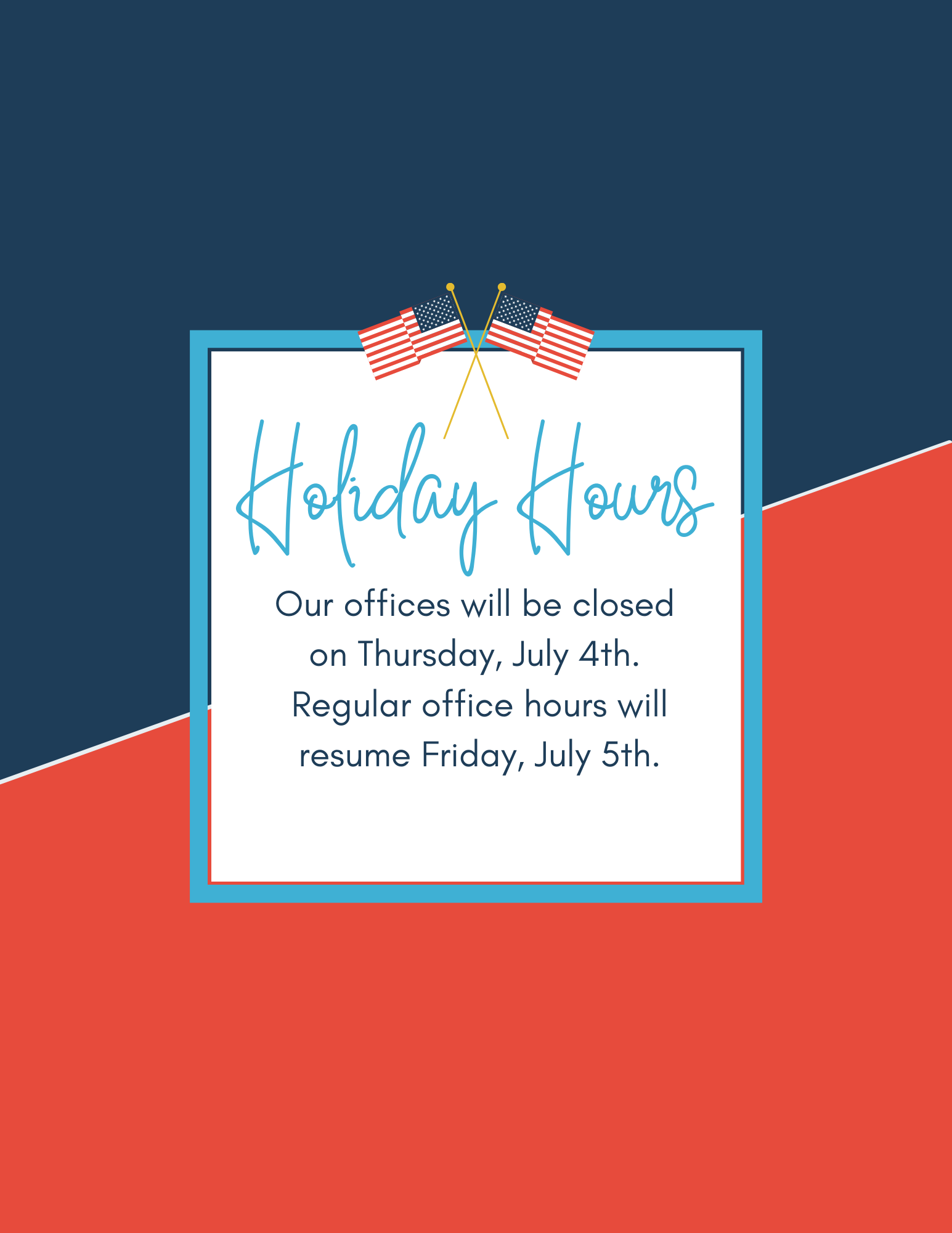 Holiday Hours: Our offices will be closed on July 4th. Regular office hours will resume Friday, July 5th.